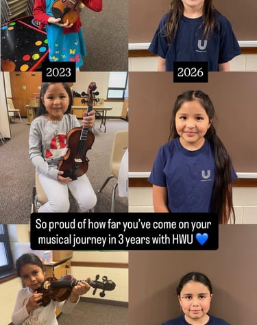 Since 2023, HWU has provided free weekly music lessons to children in local shelters, a mission inspired by a child's sincere passion to learn.